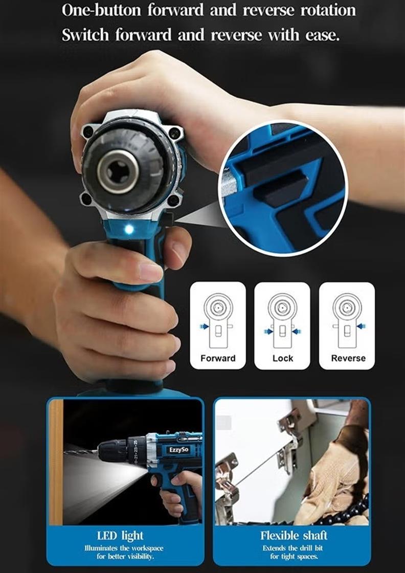 128 Piece Power Tools Kit with 48V Cordless Drill, Professional Household Home Tool Kit Set with DIY Hand Tool Kits for Garden Office House Repair Maintain